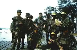 In February 1966, a small SEAL Team One detachment arrived in South Vietnam to conduct direct action missions. Operating from Nhà Bè Base, near the Rung Sat Special Zone, this detachment signalled the beginning of a SEAL presence that would eventually include 8 SEAL platoons in country on a continuing basis. SEALs also served as advisors for Provincial Reconnaissance Units and the Lein Doc Nguio Nhia, the Vietnamese SEALs.[12]