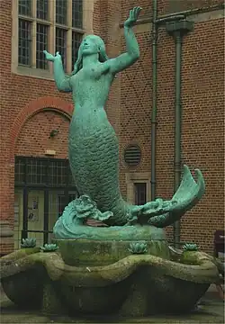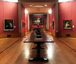 The statue on horseback fronting the entrance to the university and Barber Institute of Fine Arts is a 1722 statue of George I rescued from Dublin in 1937. This was saved by Bodkin, a director of the National Gallery of Ireland and first director of the Barber Institute. The statue was commissioned by the Dublin Corporation from the Flemish sculptor John van Nost.[60]