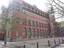 The campus has a wide diversity in architectural types and architects. "What makes Birmingham so exceptional among the Red Brick universities is the deployment of so many other major Modernist practices: only Oxford and Cambridge boast greater selections".[58] The Guild of Students original section was designed by Birmingham inter-war architect Holland Hobbiss who also designed the King Edward's School opposite. It was described as "Redbrick Tudorish" by Nikolaus Pevsner.[59]