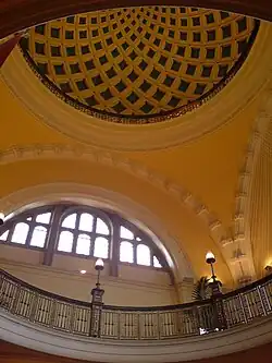 The main campus of the university occupies a site some 3 miles (4.8 km) south-west of Birmingham city centre, in Edgbaston. It is arranged around Joseph Chamberlain Memorial Clock Tower (affectionately known as "Old Joe" or "Big Joe"), a grand campanile which commemorates the university's first chancellor, Joseph Chamberlain.[50] Chamberlain may be considered the founder of the University of Birmingham, and was largely responsible for the university gaining its Royal Charter in 1900 and for the development of the Edgbaston campus. The university's Great Hall is located in the domed Aston Webb Building, which is named after one of the architects – the other was Ingress Bell. The initial 25-acre (100,000 m2) site was given to the university in 1900 by Lord Calthorpe. The grand buildings were an outcome of the £50,000 given by steel magnate and philanthropist Andrew Carnegie to establish a "first class modern scientific college"[51] on the model of Cornell University in the United States.[52] Funding was also provided by Sir Charles Holcroft.[53]
