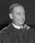 Upon becoming president in October 1957, Clark Kerr supervised UC's rapid transformation into a true public university system through a series of proposals adopted unanimously by the regents from 1957 to 1960.[19][20] Kerr's reforms included expressly granting all campus chancellors the full range of executive powers, privileges, and responsibilities which Sproul had denied to Kerr himself, as well as the radical decentralization of a tightly knit bureaucracy in which all lines of authority had always run directly to the president at Berkeley or to the regents themselves.[19][20][46] In 1965, UCLA Chancellor Franklin D. Murphy tried to push this to what he saw as its logical conclusion: he advocated for authorizing all chancellors to report directly to the Board of Regents, thereby rendering the UC president redundant.[47] Murphy wanted to transform UC from one federated university into a confederation of independent universities, similar to the situation in Kansas (from where he was recruited).[47] Murphy was unable to develop any support for his proposal, Kerr quickly put down what he thought of as "Murphy's rebellion", and therefore Kerr's vision of UC as a university system prevailed: "one university with pluralistic decision-making".[47]