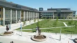 With decentralization complete, it was decided in 1986 that the UC president should no longer be based at the Berkeley campus, and the UC Office of the President moved to Kaiser Center in Oakland in 1989.[51] That lakefront location was subject to widespread criticism as "too elegant and too corporate for a public university".[52] In 1998, the Office of the President moved again, to a newly constructed but much more modest building near the former site of the College of California in Oakland.[53]