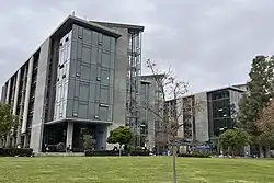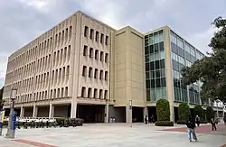 In the mid-2000s, the campus underwent a historic $1.1 billion dollar expansion to keep pace with projected enrollment, adding another 2.7 million square feet of instructional and research facilities and over 20 buildings.[80] As a consequence, Frank Gehry's Information and Computer Science/Engineering Research Facility (ICS/ERF) building, which won a Progressive Architecture Award in 1985 and had brought UCI to prominence in architectural circles, was demolished in 2007[81] to make way for the new six-story, 180,000 square foot Engineering Hall. It sparked outcry from architecture critics and art historians alike, while campus architect and associate vice chancellor Rebekah Gladson maintained that the ICS/ERF building was an "interim fix" during the building boom of the 1980s. The relatively inexpensive cost of construction, at $2 million in 1986, was merely adequate at a time when state funding was insufficient for larger, more permanent facilities. As a result, the twenty years that had passed since construction had led to problems with exterior waterproofing and structural deterioration. A target enrollment of about 30,000 students, which called for higher density accommodations on campus were other motivators for the razing.[82][83] Two buildings designed by Frank Gehry in the Henry Samueli School of Engineering still remain today, the McDonnell Douglas Engineering Auditorium and the Rockwell Engineering Center, completed in 1990.[84][85]