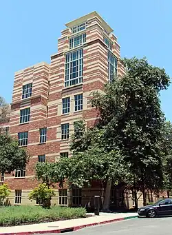 Becket greatly streamlined its general appearance, adding several rows of minimalist, slab–shaped brick buildings to the southern half, the largest of these being the UCLA Medical Center.[69] Architects such as A. Quincy Jones, William Pereira, and Paul Williams designed many subsequent structures on the campus during the mid-20th century. More recent additions include buildings designed by architects I.M. Pei, Venturi, Scott Brown and Associates, Richard Meier, Cesar Pelli, and Rafael Vinoly. To accommodate UCLA's rapidly growing student population, multiple construction and renovation projects are in progress, including expansions of the life sciences and engineering research complexes. This continuous construction gives UCLA the nickname "Under Construction Like Always".[70]