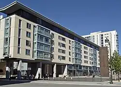 Additionally, the William J. Rutter Center, designed along with the adjacent 600-space parking structure by Ricardo Legorreta, opened in October 2005 and contains a fitness and recreation center, swimming pools, student services, and conference facilities. The building is named in honor of William J. Rutter, former chairman of the university's Department of Biochemistry & Biophysics and co-founder of Chiron Corporation.[51] A housing complex for 750 students and postdoctoral fellows and an 800-space parking garage also opened in late 2005. And a fourth research building, designed by Rafael Viñoly and named the Helen Diller Family Cancer Research Building, opened in June 2009. Two additional research buildings designated for neuroscience and cardiovascular research are currently in the planning and design phase.[52] A new specialty hospital focused on women, children, and cancer on the Mission Bay campus opened in February 2015.[53]