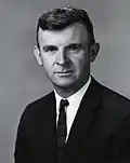 The first Chancellor under the new independent configuration was John B. de C.M. Saunders, previously provost, a White South African who had a strong preference for clinical medical training over research.[25] The resulting controversy "became front-page news in San Francisco".[26] On one side was most of the clinical faculty, who owed their appointments to Saunders.[26] On the other side was the basic sciences faculty, many of whom were recent transplants from Berkeley.[27] UC President Clark Kerr and the regents ultimately decided in favor of the research model.[27] As part of a compromise designed to heal the UCSF community, Kerr and Board of Regents chair Edward W. Carter negotiated the simultaneous resignations of both Saunders and Dean William Reinhardt of the UCSF School of Medicine, who had been held responsible for the researchers' rebellion by Saunders' supporters.[27]
