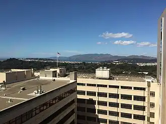 The Parnassus campus, home of many academic programs and the UCSF Medical Center, with Mount Sutro and the Sutro Tower in the background