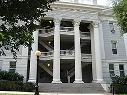 After the tenure of the next two presidents, John Brown (1811–1816) and Robert Finley (1817),[27] a timeframe that saw enrollment drop, presidents Moses Waddel (1819–1829) and Alonzo Church (1829–1859) worked to re-engage new students. By 1859, enrollment had risen to 100 students, and the university employed eight faculty members and opened a new law school.[28] During this timeframe, the university erected the New College building followed by the Chapel in 1832.[26] Church was the longest-serving president in UGA history.[29] In 1859, the state legislature abolished the Senatus Academicus, leaving the board of trustees as the only official governing body. When Church retired,[30] Andrew A. Lipscomb was appointed to the newly renamed position of chancellor in 1860.[28]