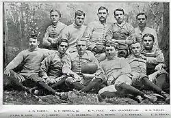 Several of the university's extracurricular organizations began in the late 1800s. In 1886, fraternities at UGA began publishing the school's yearbook, the Pandora. The same year, the university gained its first intercollegiate sport when a baseball team was formed, followed by a football team formed in 1892. Both teams played in a small field west of campus now known as Herty Field. The Demosthenian and Phi Kappa literary societies together formed the student paper, The Red & Black, in 1883.[33] In 1894, the University of Georgia joined six other southeastern schools to form the Southern Intercollegiate Athletic Association (SIAA).[34]
