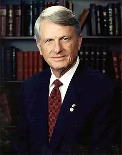Henry King Stanford served as interim president before the appointment of Charles Knapp in 1987.[58] Together with UGA alumnus and Georgia Governor Zell Miller, Knapp helped establish the state's HOPE Scholarship in 1993 with funds appropriated from the new state lottery.[59] Knapp also was a founding member of the Georgia Research Alliance, and construction projects totaling more than $400 million were started during his administration, including the Biological Sciences Complex (1992), Ramsey Student Center for Physical Activities (1995), the Performing Arts Center, Hodgson Hall (1996), the music building (1996), the Georgia Museum of Art (1996), Dean Rusk Hall (1996), and the UGA Welcome Center (1996). The campus hosted four events in the 1996 Summer Olympics: rhythmic gymnastics, volleyball, women's Gold Medal football match, and men's Gold Medal football match.[60] In 1997, Knapp was succeeded by Michael Adams, who served as UGA president for 16 years, well into the 21st century.[61] After his retirement as president, Knapp continued to serve by joining UGA's Institute of Higher Education as a part-time Distinguished Public Service Fellow and as a professor of economics in the university's Terry College of Business.