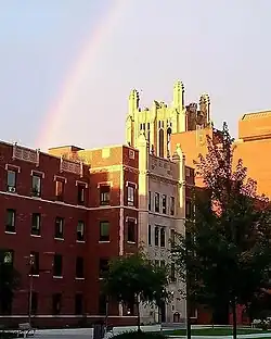 General Hospital's collegiate Gothic tower is prominent on the west side of campus