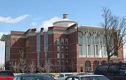 In May 1970, students at the university began protesting the shootings at Kent State University.[16][31] In response, Governor Louie Nunn deferred to the National Guard in an attempt to disperse the protesters. A ROTC building was destroyed by fire. The Louie B. Nunn Center for Oral History at the University of Kentucky Libraries has 13 oral history interviews with participants in the protests, university officials as well as former governor Nunn.[31] Nine years later, the Singletary Center for the Arts opened, named in honor of former university president Otis Singletary.[16]