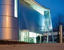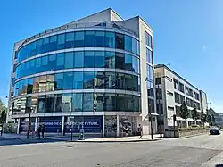 The Central Teaching Hub is a large multi-use building that houses a recently refurbished Lecture Theatre Block (LTB) and teaching facilities (Central Teaching Labs, CTL) for the Departments of Chemistry and Physics and the School of Environmental Sciences, within the university's Central City Centre Campus. It was completed and officially opened in September 2012 with an estimated project cost of £23m.[31] The main building, the 'Central Teaching Laboratory', is built around a large atrium and houses seven separate laboratories that can accommodate 1,600 students at a time. A flexible teaching space, computing centre, multi-departmental teaching spaces, and communal workspaces can also be found inside. The adjoining University Lecture Block building contains four lecture rooms and further social spaces.[32]