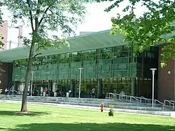 The Belknap Campus has expanded greatly in recent years, with land housing abandoned factories in the area being purchased and redeveloped. Projects built since 1998 include L&N Federal Credit Union Stadium and adjacent Trager Center fieldhouse, Owsley B. Frazier Cardinal Park (which includes Ulmer Stadium for softball, Trager Stadium for field hockey, Cardinal Track and Soccer Stadium, Bass-Rudd Tennis Center, locker rooms, a playground and a cushioned walking path), Jim Patterson Stadium for baseball, Ralph R. Wright Natatorium, Owsley Brown Frazier Sports Medicine Center, and a lacrosse stadium. With new parking at Cardinal Stadium, non-resident parking was moved there and the parking lots near campus were redeveloped with new dormitory buildings, including the Bettie Johnson Apartments,[41] Kurz Hall, Minardi Hall, and Community Park.[42]