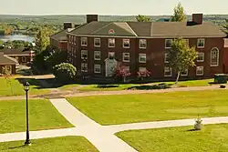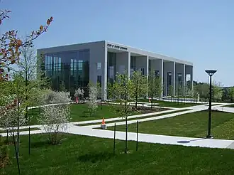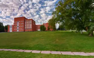 The campus expanded over the next two decades, constructing the G. Forbes Elliot Athletics Centre in 1975, the Canada Games Stadium in 1985, and the Thomas J. Condon Student Centre in 1986. Despite these developments, UNBSJ was considered a commuter campus until 1993, following the construction of the Sir James Dunn Residence. Additional buildings were constructed over subsequent years, such as the K.C. Irving Hall,[39] the Modern Languages Centre (now home to Dalhousie Medicine New Brunswick),[41] the Dr. Colin B. Mackay Residence,[42] and the Hans W. Klohn Commons.[43]