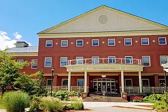 Architect G. Ernest Fairweather designed several of the campus buildings, including the Old Civil Engineering Building (1900) and the Gymnasium (1906).[31] In addition, several of the stained glass windows in the Convocation Hall were created by Robert McCausland Limited. UNBF's War Memorial Hall (usually referred to as Memorial Hall), originally built as a science building in 1924, honours the 35 UNB Alumni who died in World War I. UNBF's Brigadier Milton F. Gregg, V.C., Centre for the Study of War and Society (usually referred to as The Gregg Centre) was created in 2006.[32] The Richard J. Currie Center, a five-storey 139,000-square-foot building, was constructed in 2013.[5]