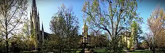 The University's historic center, comprising the Basilica, the Golden Dome, and Washington Hall, was built in the early years of the university. | |