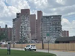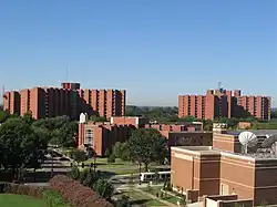 in the post-war period, the university saw rapid growth and a surge in enrollment. By 1965, enrollment had risen over 450% to 17,268, causing housing shortages.[21] In the mid-1960s, three new 12-story dormitories were erected immediately south of the South Oval. In addition to these three towers, an apartment complex for married students, including men returning to college under the GI Bill, was built.[27]