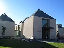 Donald W. Reynolds Center for the Performing Arts, formerly Holmberg Hall, exemplifies the school's architectural style.