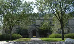Designed by David Robertson Brown (architect), the Memorial Gates were erected in 1927 at the corner of College Drive and Hospital Drive in honour of the University of Saskatchewan alumni who served in the First World War. A stone wall bears inscriptions of the names of the sixty seven university students and faculty who lost their lives while on service during World War I.[22] The hallways of the Old Administrative Building (College Building) at the University of Saskatchewan are decorated with memorial scrolls in honour of the University of Saskatchewan alumni who served in the World Wars.[23]
