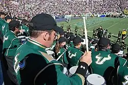 The first USF Commencement ceremony was held in 1963 where 325 degrees were conferred.[24] Now, the school awards over 13,000 degrees each year. Commencement ceremonies are held three times a year at the end of the Fall, Spring, and Summer semesters.[103] Spring ceremonies are generally the largest, with five separate ceremonies held each semester.[24] Commencement ceremonies are held in the Yuengling Center.[103] Since 2013, graduate's names have been announced by Associate Athletic Director Jim Louk, who is known for being the "Voice of the Bulls" as the radio announcer for USF football and basketball games.[104]