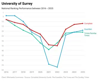 - ^ a b "Rankings and league tables | University of Surrey". www.surrey.ac.uk. Archived from the original on 21 February 2019. Retrieved 14 June 2019.