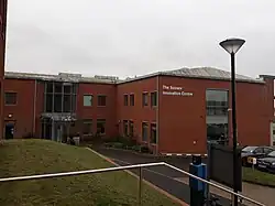 The university's main library is at the centre of its campus. It was opened by Queen Elizabeth II on 13 November 1964.[6] The Royal Literary fund office is based at the Library, providing support for students around academic writing. The Library also houses a research support centre and a research hive for PhD students and research staff.[42] There is also a Skills Hub, training facilities, a support centre, a café and a Careers and Employability Centre.