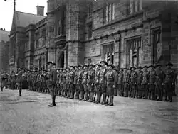 Some other architects associated with the university were Walter Liberty Vernon, Walter Burley Griffin, Leslie Wilkinson, and the New South Wales Government Architect.[73] The building was designed in accordance with the university's masterplan by the architect and founding dean of the university's architecture faculty, Leslie Wilkinson, who himself was inspired by a previously unused masterplan developed for the campus by Walter Burley Griffin in 1915.[75]