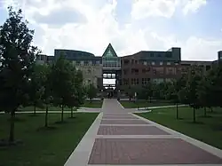The Main Campus, the original and largest, was born out of a 600-acre donation to the University of Texas Board of Regents.[94] It proved to be so controversially remote to the city (at the time) that many San Antonians nicknamed it "University of Texas at Boerne" or "UT Boerne".[94][95][96] The Main Campus opened its doors in 1975. Prior to that, classes were held at the Koger Center at Babcock Road and Loop 410.[94] Roadrunner Cafe, the university's first dining hall, was erected in 2005.[97] In 2006, UTSA acquired a 125-acre swath of land on Hausman Road to build its future athletics complex, bringing the Main Campus up to 725 acres in total.[98] Up until 2009, it was known as the "1604 Campus", at which point it was renamed the "Main Campus" so as to better reflect its importance within the university and community as a whole.[99] Students have the choice to live at one of the campus' many housing complexes.[100][101]