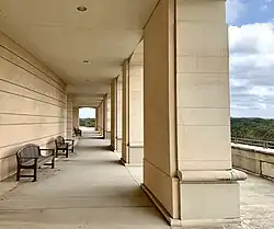 In 1970, the University of Texas Board of Regents appointed the university's first president, Arleigh B. Templeton, who served from 1970 to 1972, and received a land donation of 600 acres (2.4 km2) in far northwest San Antonio for the site of UTSA.[26] The architecture firm of Ford, Powell and Carson Inc. was assigned to develop a master plan for the university.[27] O'Neil Ford, the designer of both the Tower of the Americas and the Trinity University tower, designed the campus to be reminiscent of an Italian village.[28]