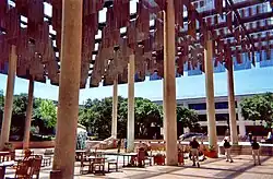 Sombrilla Plaza, O'Neil Ford and Milton Babbitt designed the Main Campus, including The Sombrilla.[29]
