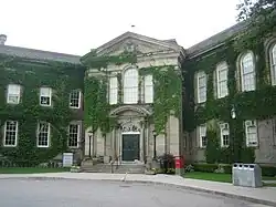The University of Toronto maintains a large suburban campus in the city of Mississauga, approximately 33 kilometres southwest of the St. George campus downtown. The Mississauga campus was established in 1967 as Erindale College, one of the university's two colleges located outside of Toronto at the time.[75] Following rapid growth of its student population in the 2000s, the campus became its own division, and has since expanded to become the university's second-largest division overall, as well as a hub for business and innovation in the Peel Region as one of its only university locations.[76][77] The campus is known for its proximity to nature, located on the bank of the Credit River on 225 acres of protected forested land. In 2011, the Temerty Faculty of Medicine — in partnership with the Trillium Health Partners system of hospitals — established the Mississauga Academy of Medicine, one of the four academies in its Doctor of Medicine program. The academy is based in the Terrence Donnelly Health Sciences Complex on the Mississauga campus.[78]