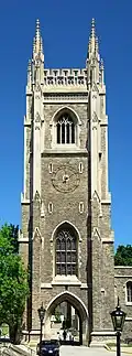 Soldiers' Tower, a memorial to alumni fallen in the World Wars, contains a 51-bell carillon.