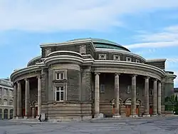 The neoclassical Convocation Hall is characterized by its domed roof and Ionic-pillared rotunda.
