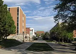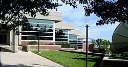 Most courses take place on the west side of campus, known as lower campus due to its lower elevation. Presidents Circle is a loop of buildings named after past university presidents with a courtyard in the center. Major libraries on lower campus include the J. Willard Marriott Library and the S.J. Quinney Law Library.[9] The primary student activity center is the A. Ray Olpin University Union, and campus fitness centers include the Health, Physical Education, and Recreation Complex (HPER) and the Eccles Student Life Center.[9][54]