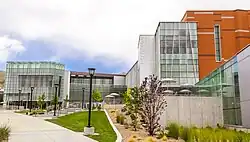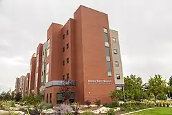 The University of Utah provides student housing in a 34-building housing complex on campus. The complex consists of nine housing areas: Chapel Glen, Gateway Heights, Sage Point, Officer's Circle, Benchmark Plaza, Shoreline Ridge, the Donna Garff Marriott Honors Residential Scholars Community (MHC for short), the Lassonde Studios, and Kahlert Village. The MHC is a dormitory strictly for honors students and was completed in fall 2012.[63] Built in 2016, the Lassonde Studios is part of the Lassonde Entrepreneur Institute and houses 400 students; the studios also feature a "creative garage" with 3D printers and spaces for startups.[64] Kahlert Village, completed in August 2020, houses 990 first-year students.[65][66]
