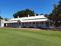 A remnant of the original buildings survives to this day in the form of the Irwin Street Building,[16] so called after its former location. In the 1930s it was transported to the new campus and served a number of uses until its 1987 restoration funded by convocation, after which it was moved across campus to James Oval. Since then, the northern end of the building has accommodated the convocation council meeting room while the remainder is used for change rooms and meeting rooms as part of the cricket pavilion. The building has been heritage-listed by both the National Trust and the Australian Heritage Council.