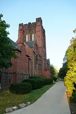 The east side of the North Quad is a group of old red buildings, including Holton Hall, Merrill Hall, Johnston Hall, Sabin Hall, and others. These older buildings were acquired by the university in the Milwaukee-Downer College campus purchase.[23] The Milwaukee-Downer "Quad" (Holton, Johnston, Merrill and Greene Halls) was added to the National Register of Historic Places in 1974.[24]