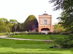 Heslington Hall is a Grade II* listed rebuilt manor house consisting of a central nine-bay two-storey block with attics and two two-storey wings at each end. It is built of brick in English bond with sandstone ashlar dressings. The original Manor house was constructed in 1568 for Sir Thomas Eynns, the Secretary and Keeper of the Seal to the Council of the North; and his wife Elizabeth.[51]