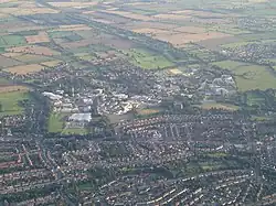South-east of the city of York,[8] the university campus is about 500 acres (200 hectares) in size.[9] The original campus, Campus West, incorporates the York Science Park and the National Science Learning Centre, and its wildlife, campus lakes and greenery are prominent. In May 2007 the university was granted permission to build an extension to its main campus, on arable land just east of the nearby village of Heslington. The second campus, Campus East, opened in 2009[10] and now hosts five colleges and three departments as well as conference spaces, a sports village and a business start-up 'incubator'. The institution also leases King's Manor in York city centre. The university had a total income of £538.6 million in 2024–25 of which £107.1 million was from research grants and contracts, with an expenditure of £525.1 million.[1]