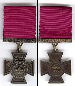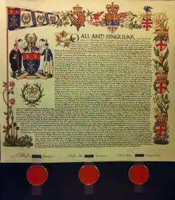 Besides its own archives containing records that outline the history of Upper Canada, the province of Ontario, and the city of Toronto dating back to the mid-19th century,[84] the college also has a notable collection of artwork, antiques, and war medals. This includes the Order of Canada insignia presented to Robertson Davies, Foster Hewitt, Charles Band, and Arnold Smith,[85] plus Canada's first Victoria Cross, awarded in 1854 to Old Boy Alexander Roberts Dunn, and the Victoria Cross given, and ceremonial sword belonging,[33] to Hampden Cockburn;[85] the valour medals were given to the Canadian War Museum on permanent loan on 17 May 2006.[86] In the college's chapel, itself decorated with works by Canadian artists, is an altar made of marble from parts of St. Paul's Cathedral, in London, England, that were damaged in the Blitz and donated by Dean of St. Paul's Walter Robert Matthews. On this is an altar cloth made from a piece of that which was used for the coronation of Queen Elizabeth II.[62] Held is an American flag that flew atop one of the World Trade Center towers in New York City. Further, the school holds works by Thoreau MacDonald and a collection of original paintings from the Group of Seven (though several were auctioned by the college in an effort to pay for the lawsuits it faced in 2004);[87][88] an original Stephen Leacock essay, titled Why Boys Leave Home—A Talk on Camping, donated in 2005 and published for the first time in The Globe and Mail;[89] and the original manuscript of Robertson Davies' work The Mask of Aesop, which he wrote in 1952 specifically for the Prep's 50th anniversary.[85] Also in UCC's possession is a chair owned by Sir John A. Macdonald and another that once belonged to George Airey Kirkpatrick.[90]