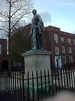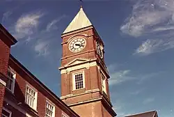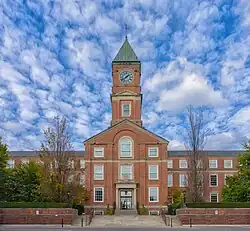 The main structure (the Upper School), constructed between 1959 and 1960, central on the campus, and with a dominant clock tower, houses the secondary school component of the college, in a quadrangle form. Laidlaw Hall, the principal assembly hall, featuring a full theatre stage and a pipe organ, is attached to the west end of the Upper School and, at the other end, is the Memorial Wing, the school's main infirmary.[60] Closing the north end of the main quadrangle (which is the location of the statue of the Lord Seaton, installed in 1934[61]) is one building, built in 1932, that contains the two boarding houses, as well as two private residences for the associated boarding masters,[41] adjacent to which is the school chapel, donated by Governor General Vincent Massey.[62]