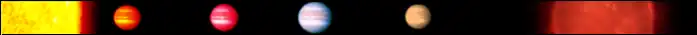 Upsilon Andromedae A is a yellow-white dwarf of spectral type F9V,[4] similar to the Sun, but younger, more massive, and more luminous. It is around four billion years old and has a similar proportion of iron relative to hydrogen to the Sun.[10] At around 1.3 solar masses,[10] it will have a shorter lifetime than the Sun. The amount of ultraviolet radiation received by any planets in the star's habitable zone would be similar to the ultraviolet flux the Earth receives from the Sun.[24]