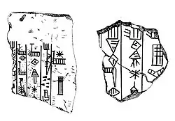 Proto-cuneiform tablets from the Early Dynastic period, c. 2900 BC, have been recovered.[18][19]