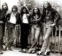 ![]() Promotional image of the band's classic lineup in 1972 Left to right: Ken Hensley, Mick Box, Gary Thain, David Byron and Lee Kerslake | |