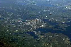 Växjö (Swedish pronunciation: [ˈvɛ̂kːɧøː])[2][3] is a city and the seat of Växjö Municipality, Kronoberg County, Sweden. As of 2023, it had 74,052 inhabitants, out of a total 98,280 municipal residents (2025).[4] It is the administrative, cultural, and industrial centre of Kronoberg County and the episcopal see of the Diocese of Växjö, with Växjö Cathedral at its heart. The city is also home to Linnaeus University.