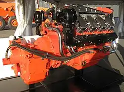 In the American Top Fuel class of drag racing, V8 engines displacing 500 cu in (8 L) today produce outputs of over 7,000 kW (10,000 hp).[26] and 10,000 N⋅m (7,400 lb⋅ft).[27][28][29] The engines used in Top Fuel and Funny car drag racing are typically based on the aluminium-conversion Chrysler 426 Hemi engine and run on highly explosive nitromethane fuel.[30]