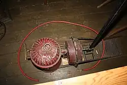 In 1860, a manual vacuum cleaner was invented by Daniel Hess of West Union, Iowa. Called a "carpet sweeper," it gathered dust with a rotating brush and had bellows for generating suction.[6][7] Another early model was the "Whirlwind", invented in Chicago in 1868 by Ives W. McGaffey. The bulky device worked with a belt-driven fan cranked by hand that made it awkward to operate, although it was commercially marketed with mixed success. [8] A similar model was constructed by Melville R. Bissell of Grand Rapids, Michigan in 1876, who also manufactured carpet sweepers.[9] The company later added portable vacuum cleaners to its line of cleaning tools.