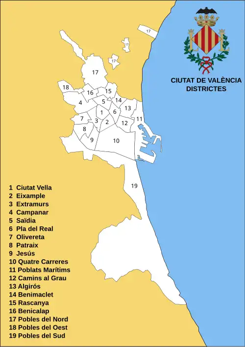 127. ^ "Districte 1. Ciutat Vella" (PDF). Oficina d'Estadística. Ajuntament de València (in Valencian and Spanish). 2008. Archived from the original (PDF) on 5 April 2010. Retrieved 16 February 2010.