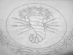Roman cornucopia, symbol of Valentia, found on the floor of a Roman building excavated in the Plaça de la Mare de Déu